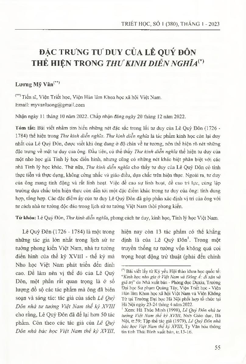 Đặc trưng tư duy của Lê Quý Đôn thể hiện trong thư kinh diễn nghĩa