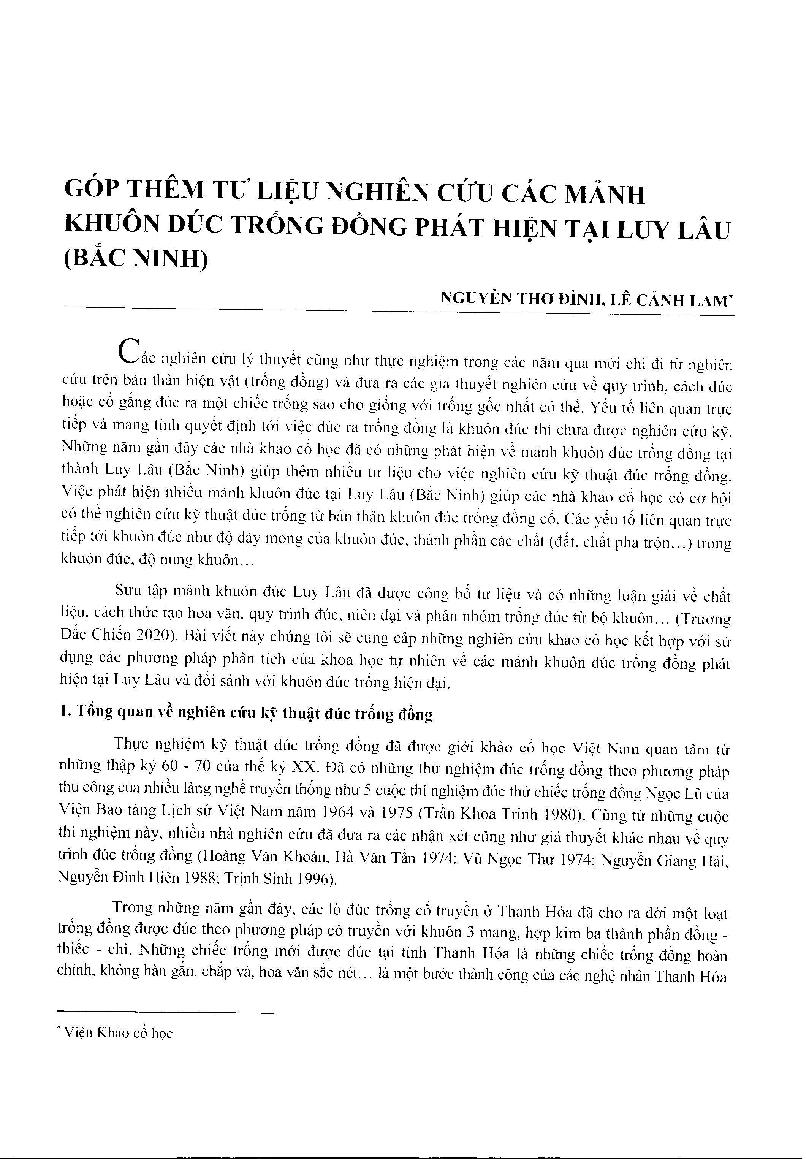 Góp thêm tư liệu nghiên cứu các mảnh khuôn đúc trống đồng phát hiện tại Luy Lâu (Bắc Ninh)