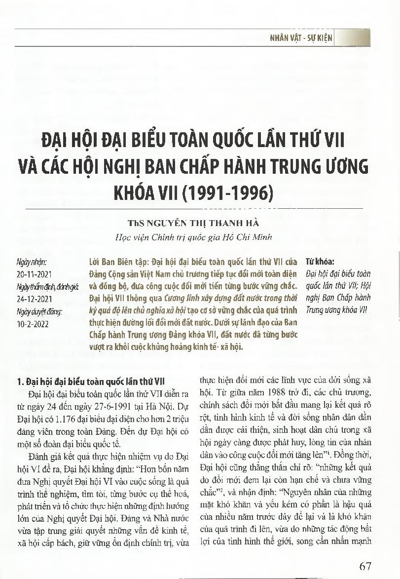Đại hội đại biểu toàn quốc lần thứ VII và các hội nghị ban chấp hành trung ương khóa VII(1991-1996)