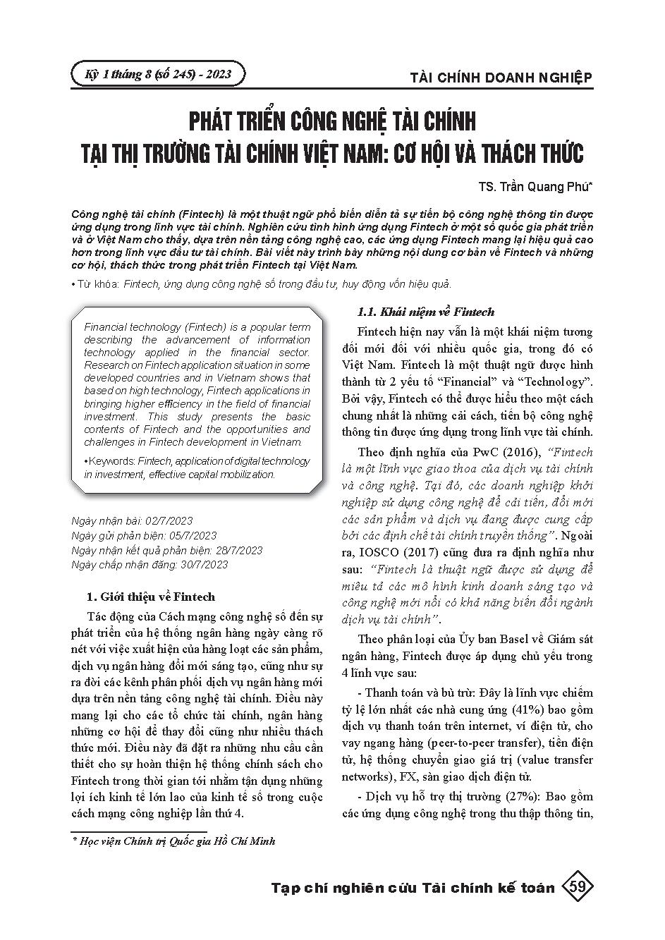 Phát triển công nghệ tài chính tại thị trường tài chính Việt Nam: Cơ hội và thách thức = Financial technology development in the Vietnamese financial market: Opportunities and challenges