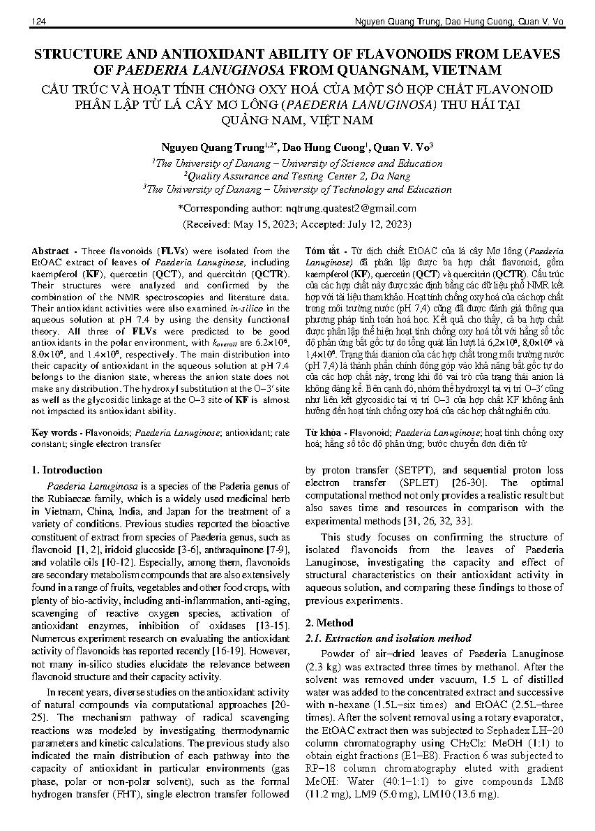 Cấu trúc và hoạt tính chống oxy hoá của một số hợp chất flavonoid phân lập từ lá cây mơ lông (paederia lanuginosa) thu hái tại Quảng Nam, Việt Nam = Structure and antioxidant ability of flavonoids from leaves of paederia lanuginosa from quangnam, Vietnam