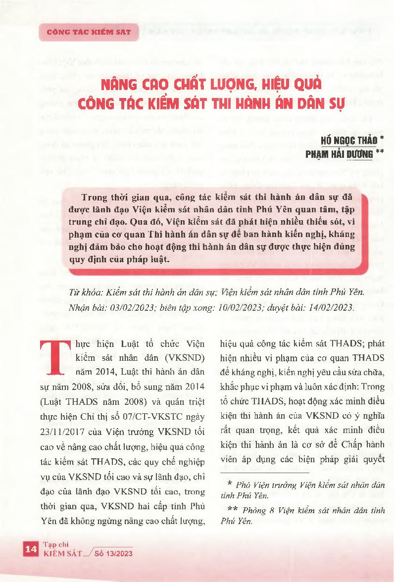 Nâng cao chất lượng, hiệu quả công tác kiểm sát thi hành án dân sự