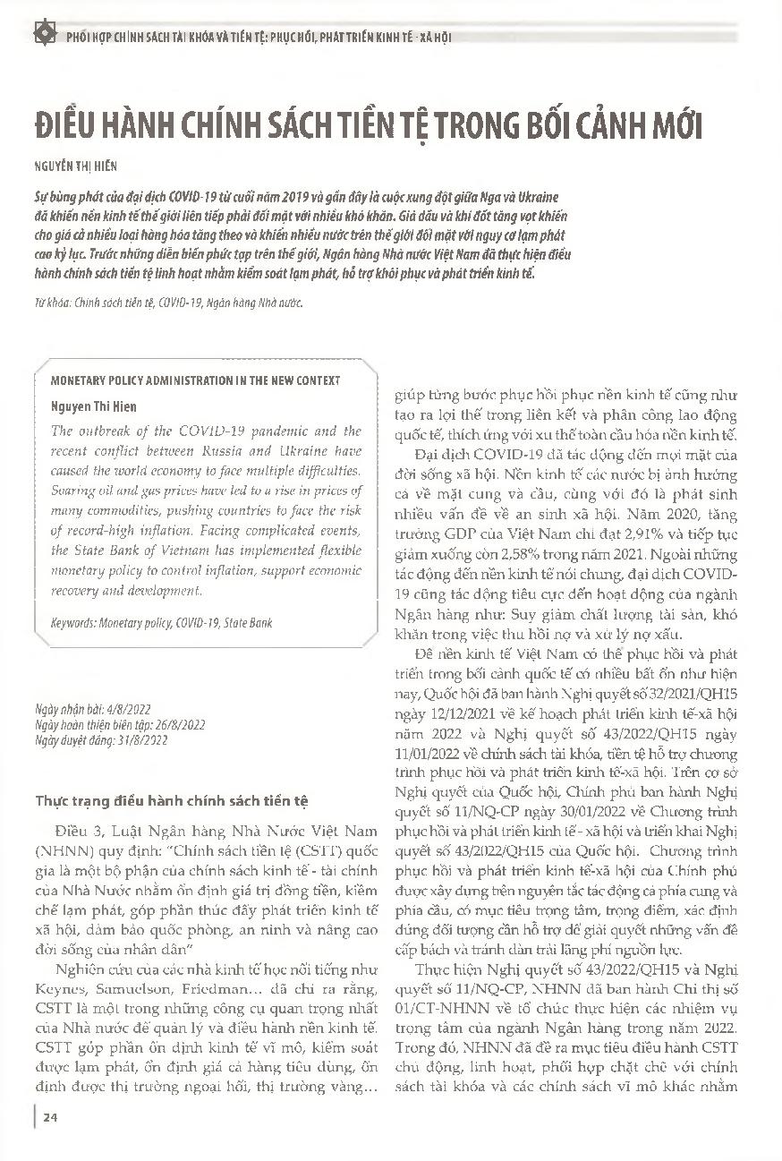 Điều hành chính sách tiền tệ trong bối cảnh mới = Monetary policy administration in the new context