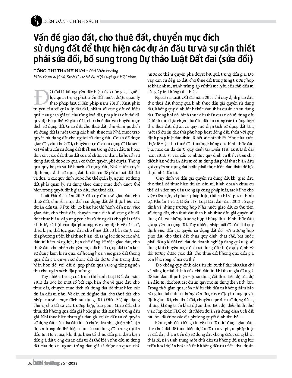 Vấn đề giao đất, cho thuê đất, chuyển mục đích sử dụng đất để thực hiện các dự án đầu tư và sự cần thiết phải sửa đổi, bổ sung trong Dự thảo Luật Đất đai (sửa đổi)