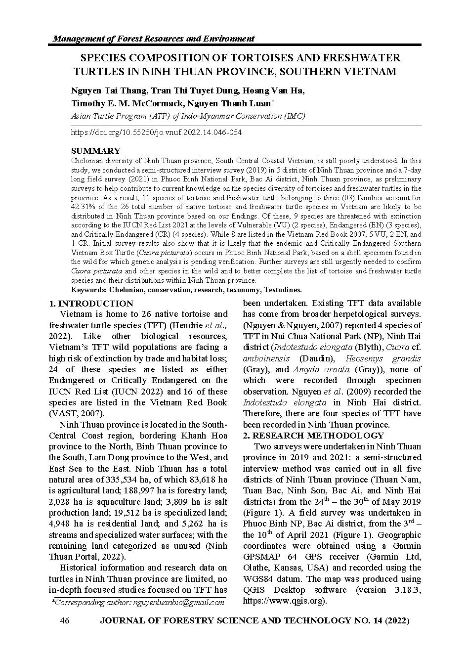 Đa dạng các loài rùa cạn và rùa nước ngọt tại tỉnh ninh thuận, miền nam việt nam = Species composition of tortoises and freshwater turtles in ninh thuan province, southern Vietnam