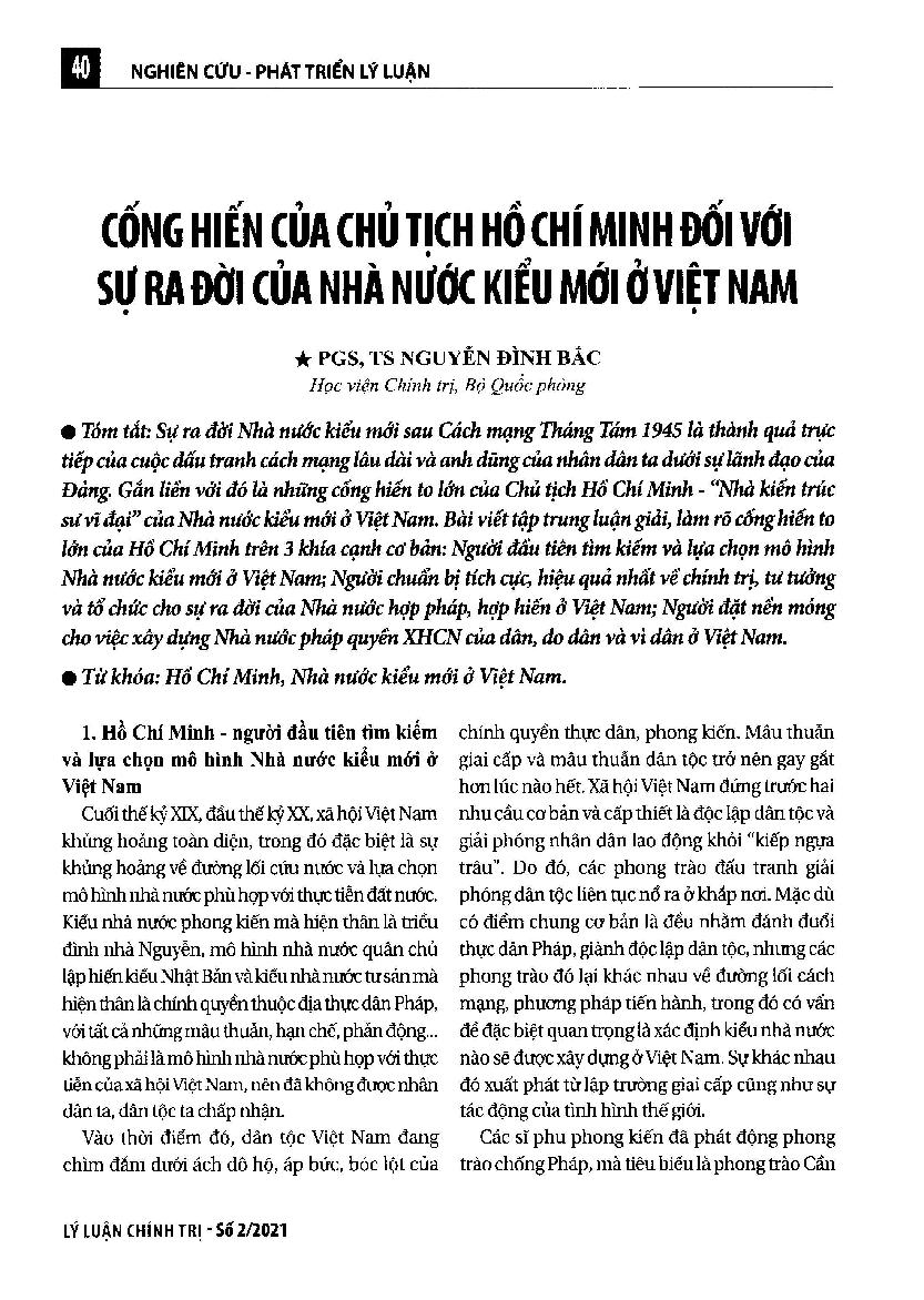 Cống hiến của Chủ tịch Hồ Chí Minh đối với sự ra đời của nhà nước kiểu mới ở Việt Nam