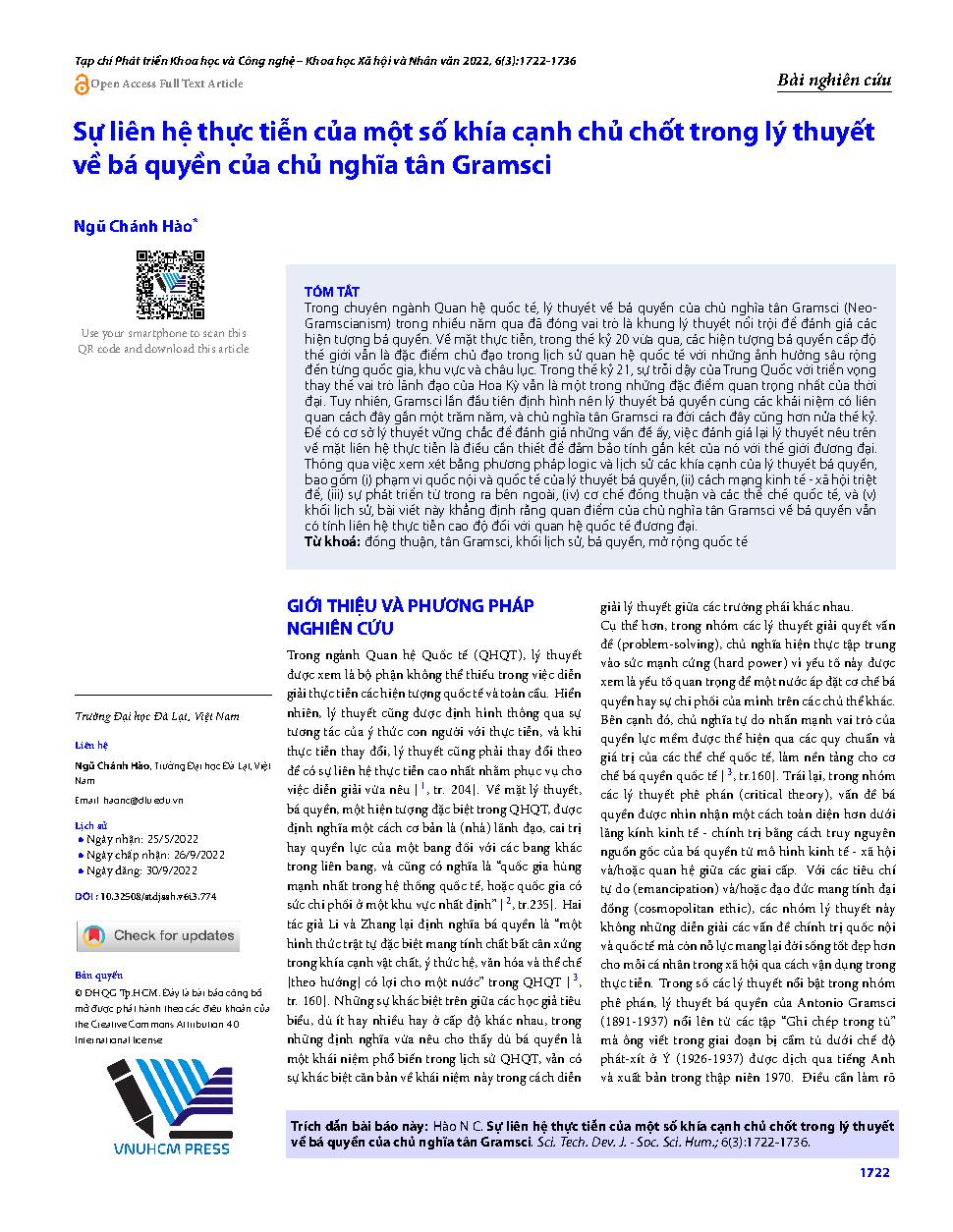 Sự liên hệ thực tiễn của một số khía cạnh chủ chốt trong lý thuyết về bá quyền của chủ nghĩa tân Gramsci = The relevance to the reality of some key aspects of the Neo-Gramscian theory of hegemony