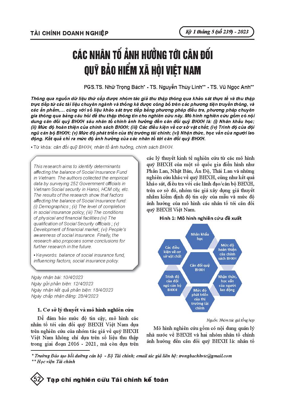 Các nhân tố ảnh hưởng tới cân đối quỹ Bảo hiểm xã hội Việt Nam = Factors affecting the balance of the Vietnam Social Insurance fund
