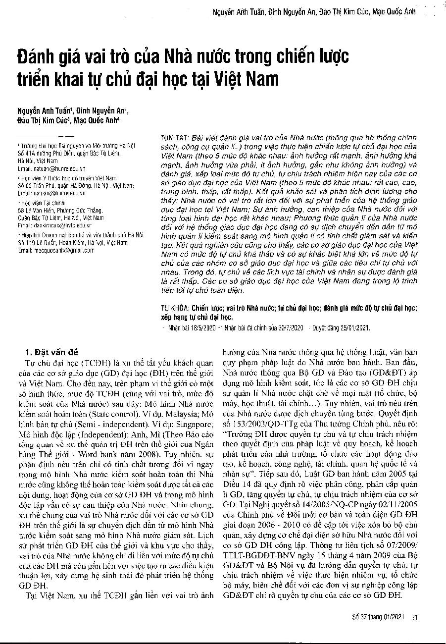 Đánh giá vai trò của Nhà nước trong chiến lược triển khai tự chủ đại học tại Việt Nam = The role of the state in the strategy of implementing higher education autonomy in Vietnam