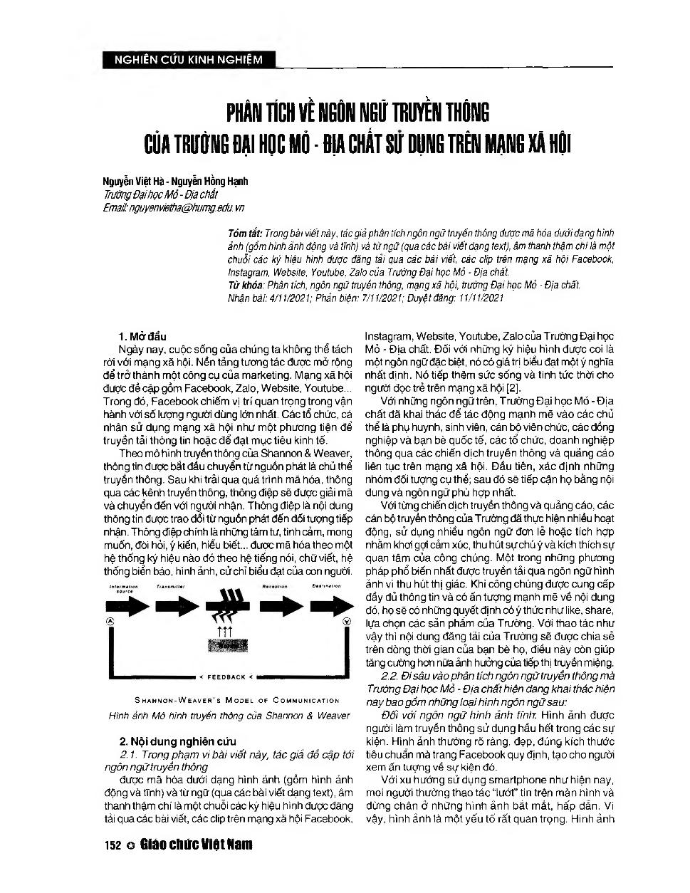 Phân tích về ngôn ngữ truyền thông của trường Đại học Mỏ - Địa chất sử dụng trên mạng xã hội = Analysis of the communication language of the University of Mining and Geology used on social networks