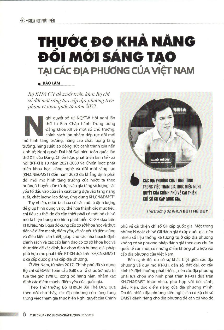 Thước đo khả năng đổi mới sáng tạo tại các địa phương của Việt Nam = Measuring innovation capacity in Vietnamese localities