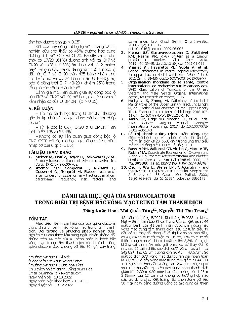 Đánh giá hiệu quả của spironolactone trong điều trị bệnh hắc võng mạc trung tâm thanh dịch = Evaluate the effectiveness of spironolactone in the treatment of serious central relationship