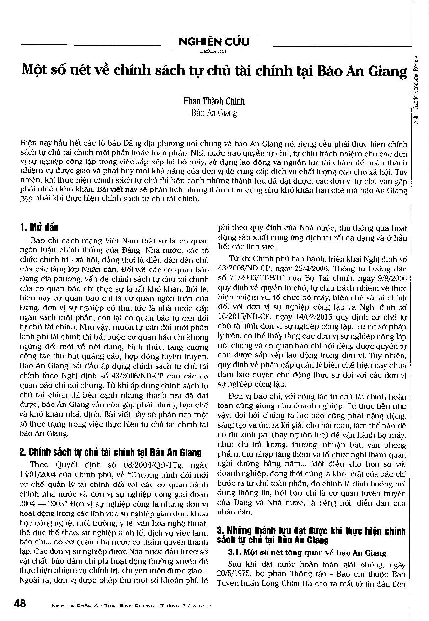 Một số nét về chính sách tự chủ tài chính tại Báo An Giang