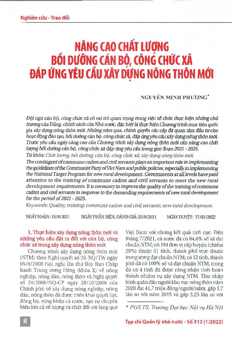Nâng cao chất lượng bồi dưỡng cán bộ, công chức xã đáp ứng yêu cầu xây dựng nông thôn mới = Improving the quality of the training of commune cadres and civil servants to meet the new rural development requirements