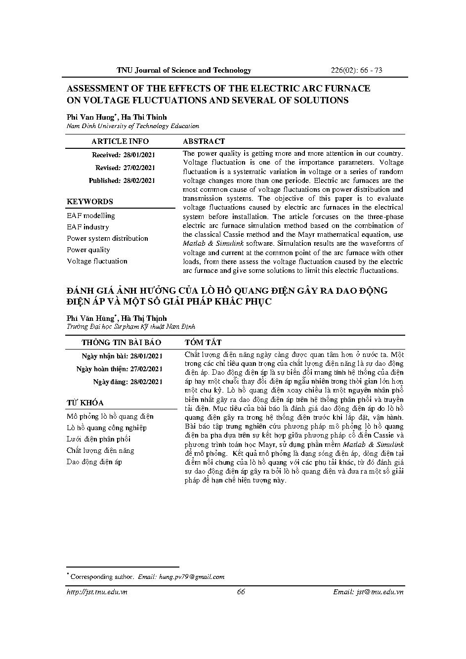 Đánh giá ảnh hưởng của lò hồ quang điện gây ra dao động điện áp và một số giải pháp khắc phục = Assessment of the effects of the electric arc furnace on voltage fluctuations and several of solutions