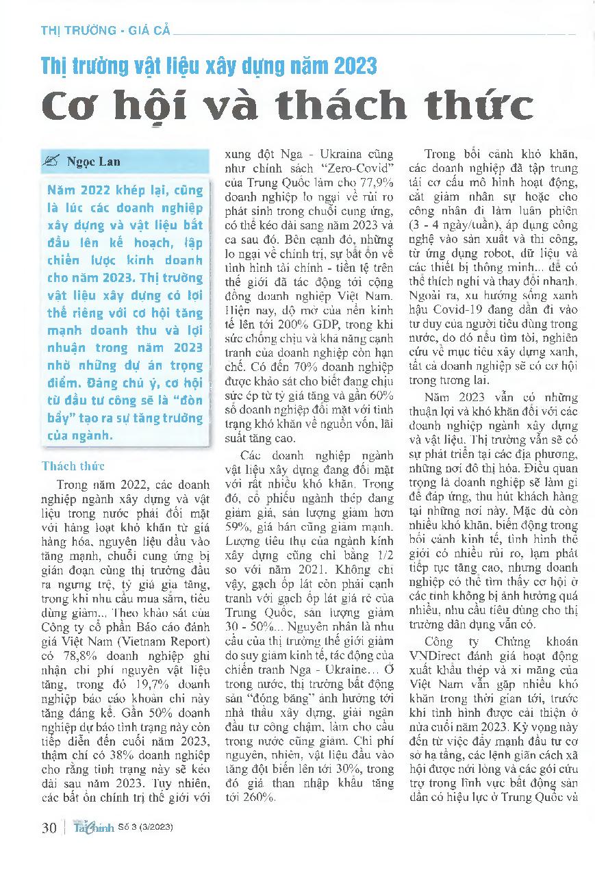 Thị trường vật liệu xây dựng năm 2023: Cơ hội và thách thức