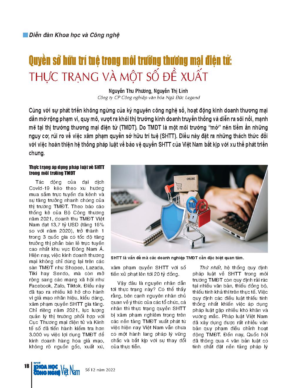 Quyền sở hữu trí tuệ trong môi trường thương mại điện tử: Thực trạng và một số đề xuất = Intellectual property rights in the e-commerce environment: Current status and some recommendations