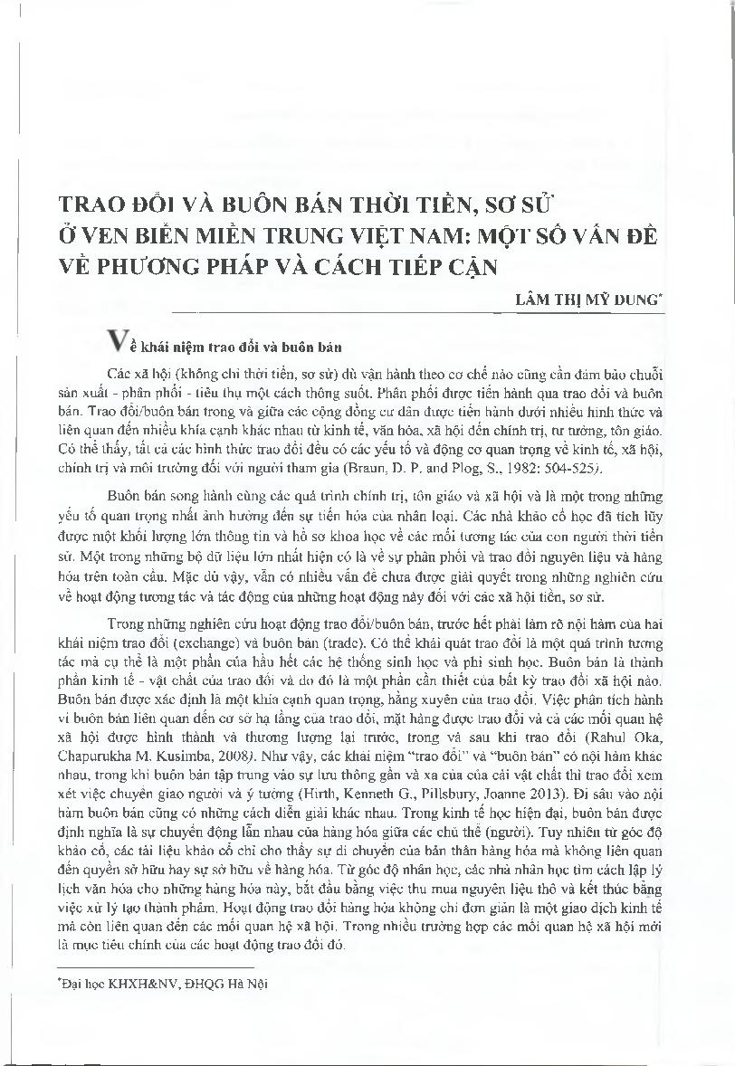 Trao đổi và buôn bán thời tiền, sơ sử ở ven biển miền Trung Việt Nam: Một số vấn đề về phương pháp và cách tiếp cận = Exchange and trade in prehistoric and protohistoric times in central Vietnam: Some issues on the approach and method