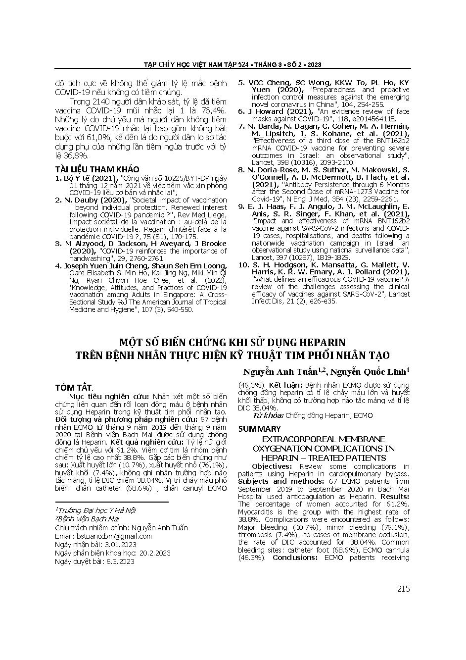 Một số biến chứng khi sử dụng Heparin trên bệnh nhân thực hiện kỹ thuật tim phổi nhân tạo = Extracorporeal membrane oxygenation complications in Heparin – treated patients