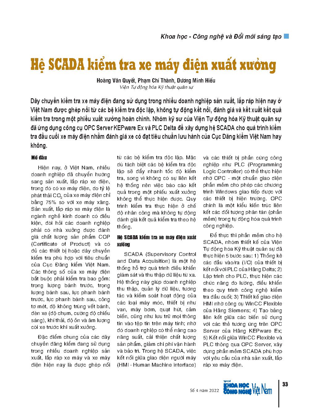 Hệ SCADA kiểm tra xe máy điện xuất xưởng
