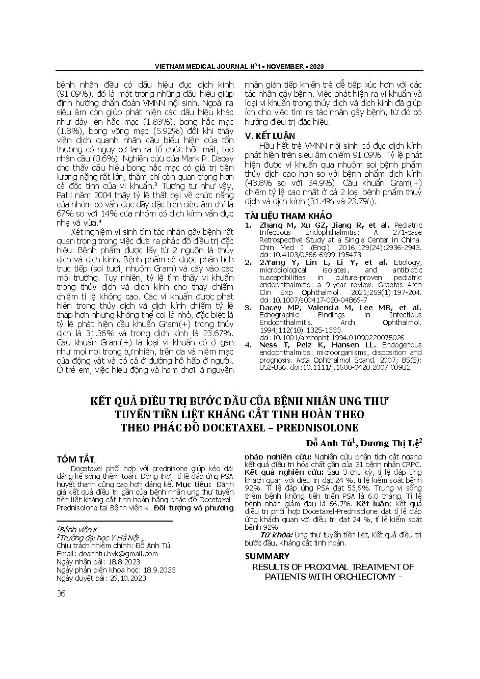 Kết quả điều trị bước đầu của bệnh nhân ung thư tuyến tiền liệt kháng cắt tinh hoàn theo theo phác đồ Docetaxel - Prednisolone = Results of proximal treatment of patients with orchiectomy - resistant prostate cancer according to the Docetaxel - Prednisolo