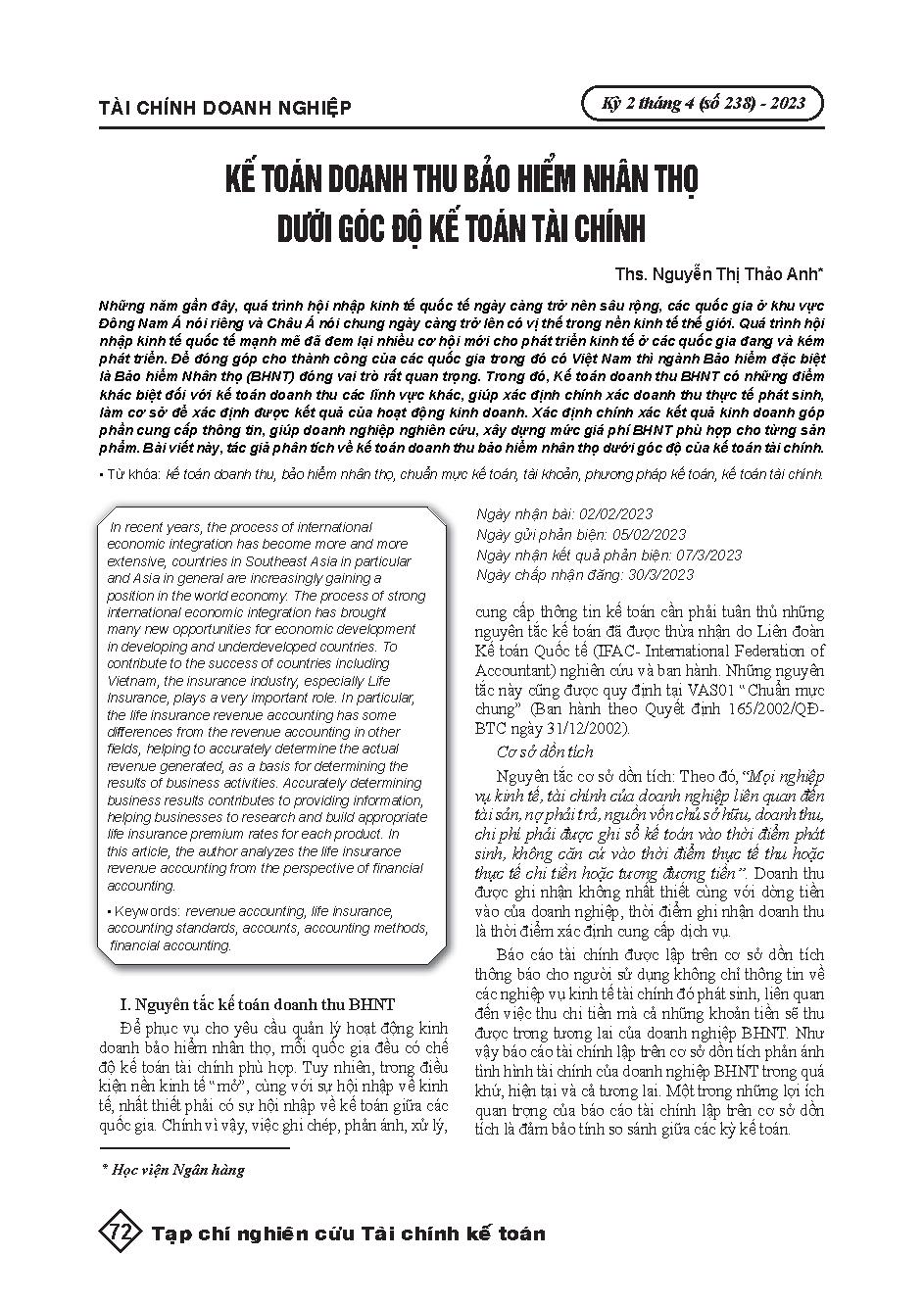 Tác giả: Nguyễn Thị Thảo Anh;