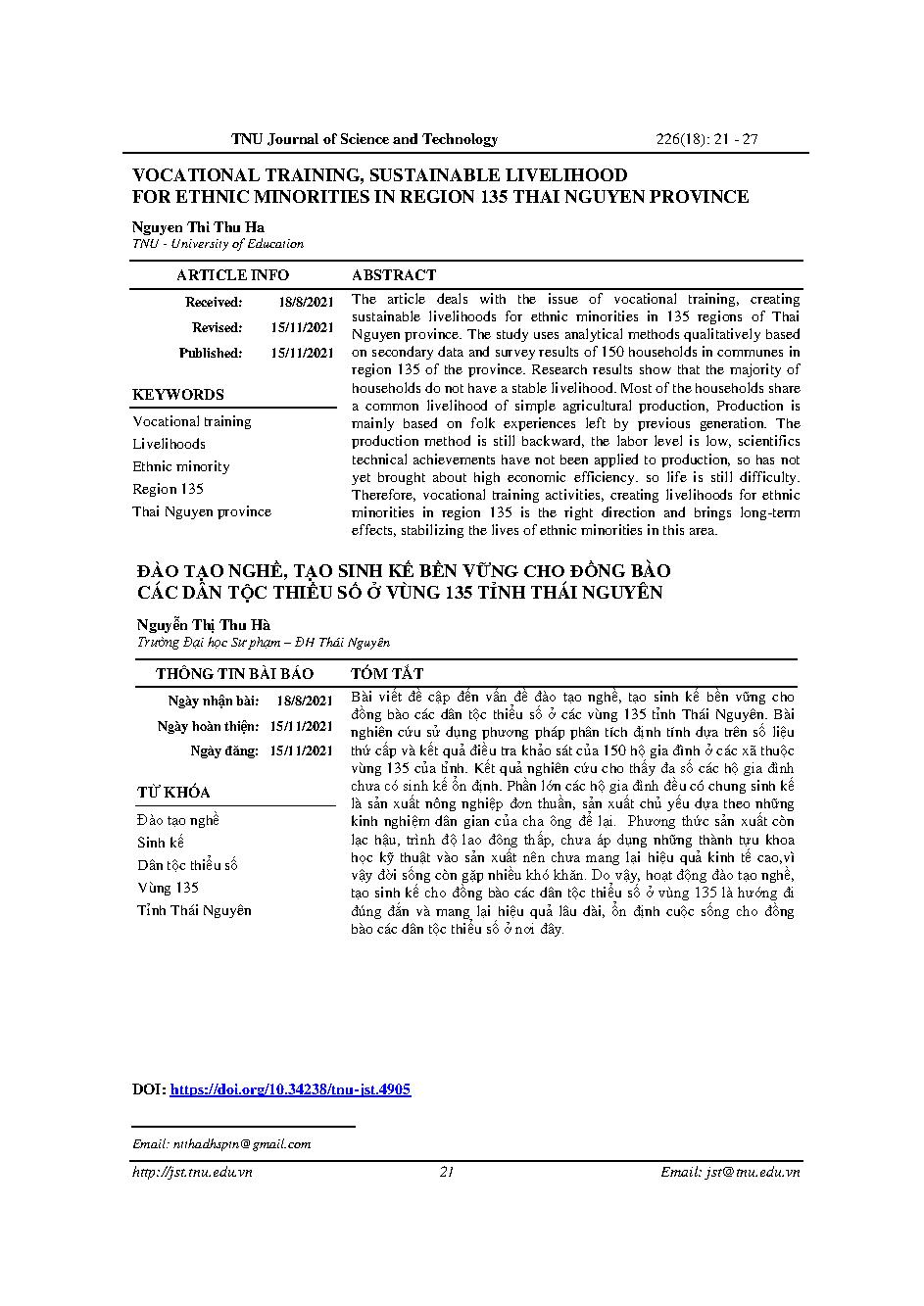 Đào tạo nghề, tạo sinh kế bền vững cho đồng bào các dân tộc thiểu số ở vùng 135 tỉnh Thái Nguyên = Vocational training, sustainable livelihood for ethnic minorities in region 135 Thai Nguyen province