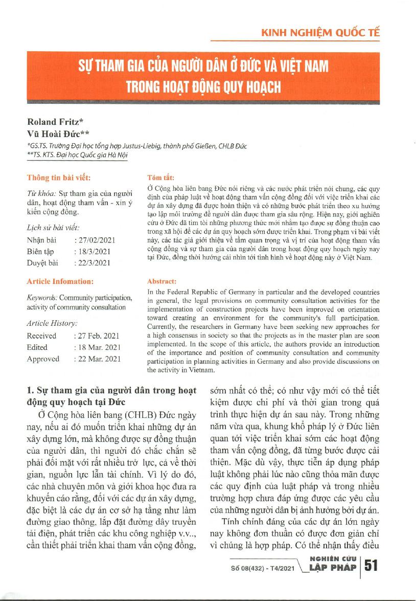 Sự tham gia của người dân ở Đức và Việt Nam trong hoạt động quy hoạch