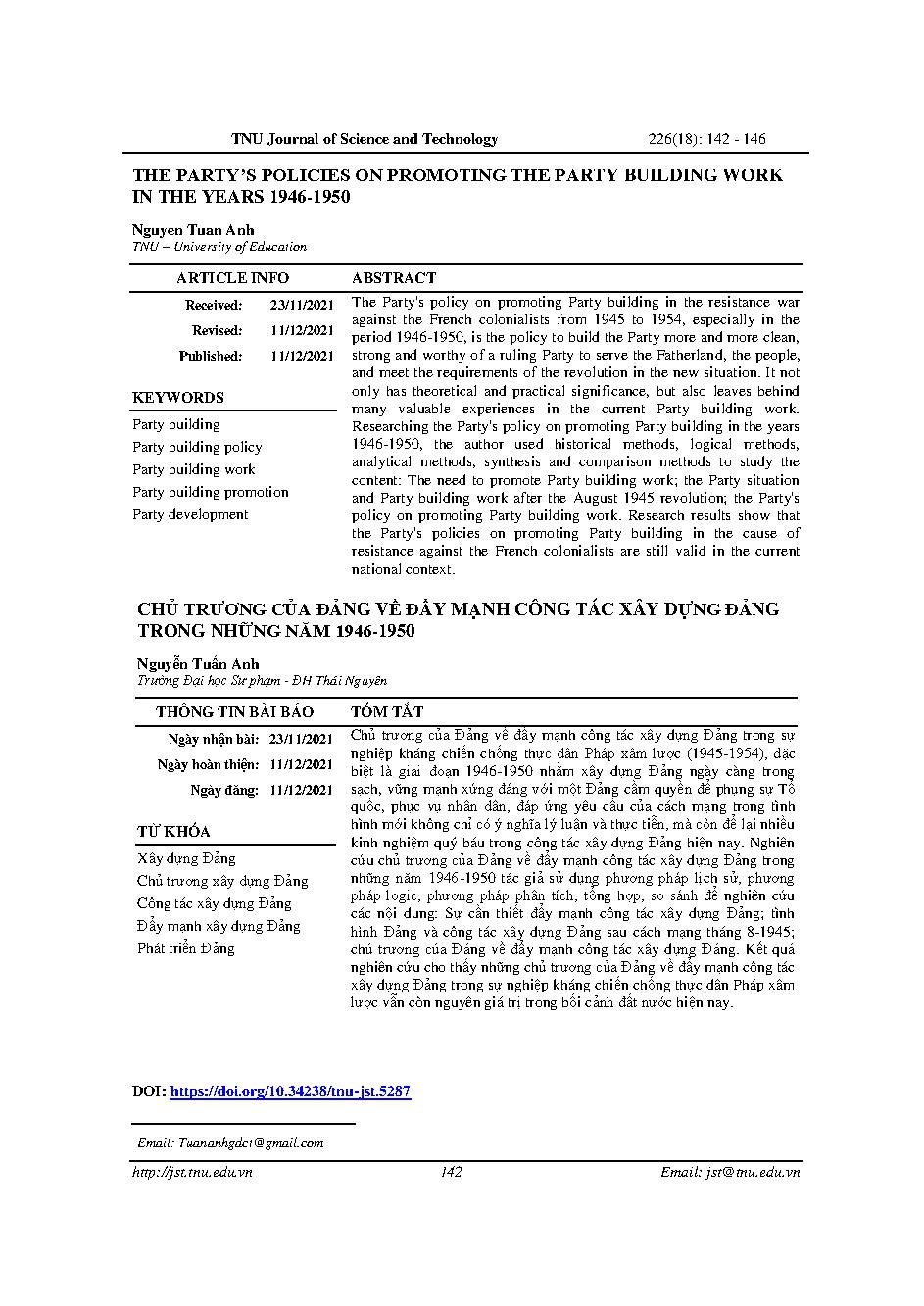 Chủ trương của Đảng về đẩy mạnh công tác xây dựng đảng trong những năm 1946-1950 = The party’s policies on promoting the party building work in the years 1946-1950