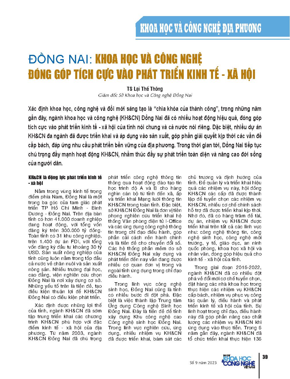 Đồng Nai: Khoa học và công nghệ đóng góp tích cực vào phát triển kinh tế - xã hội