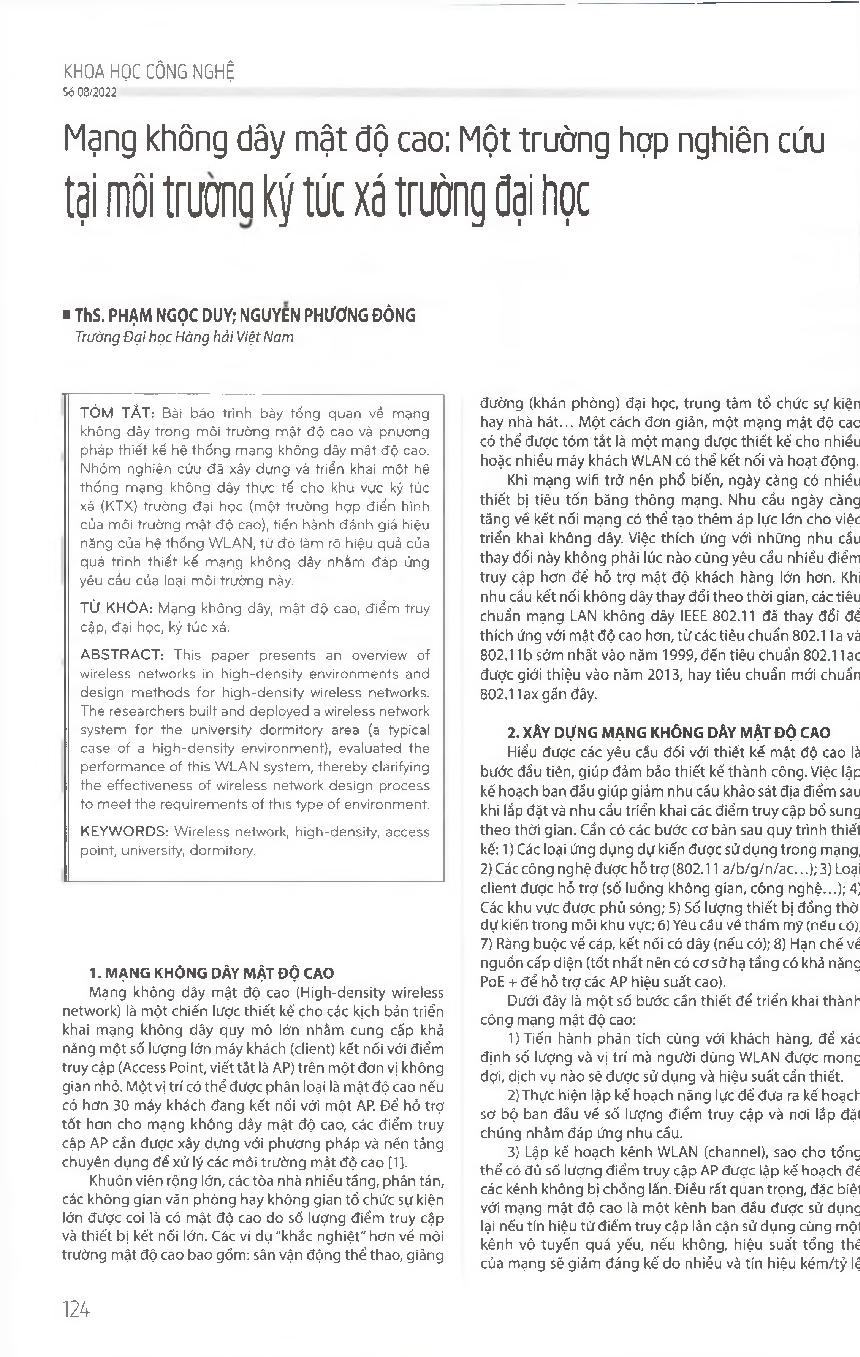 Mạng không dây mật độ cao: Một trường hợp nghiên cứu tại môi trường ký túc xá trường đại học = High-density wireless network_ A case study in the university dormitory