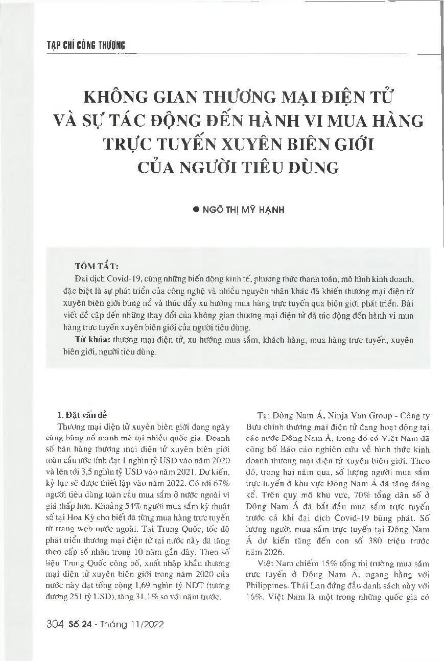 Không gian thương mại điện tử và sự tác động đến hành vi mua hàng trực tuyến xuyên biên giới của người tiêu dùng = The growth of e-commerce sector and its impacts on the cross-border online purchasing behavior of consumers