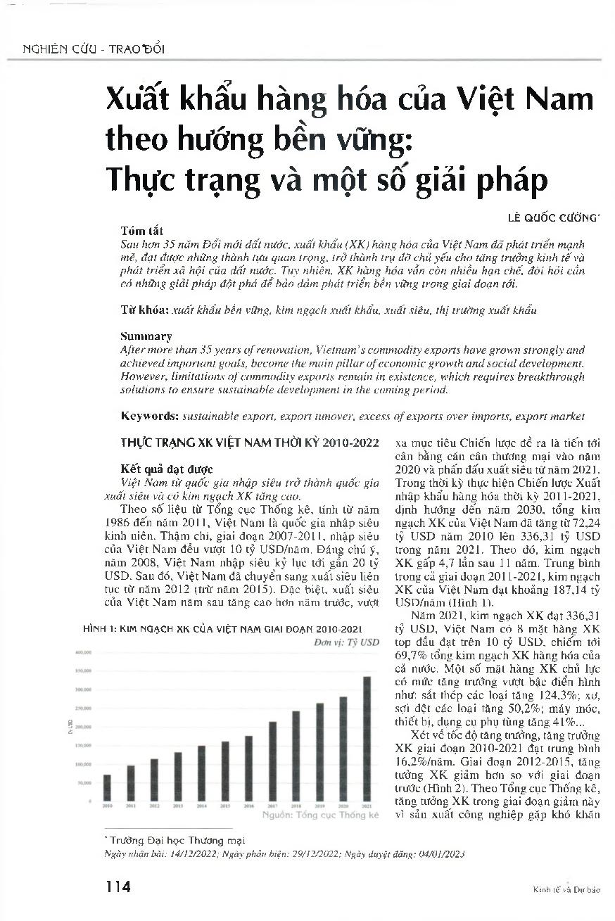 Xuất khẩu hàng hóa của Việt Nam theo hướng bền vững: Thực trạng và một số giải pháp = Vietnam's commodity exports towards sustainability: Reality and some solutions