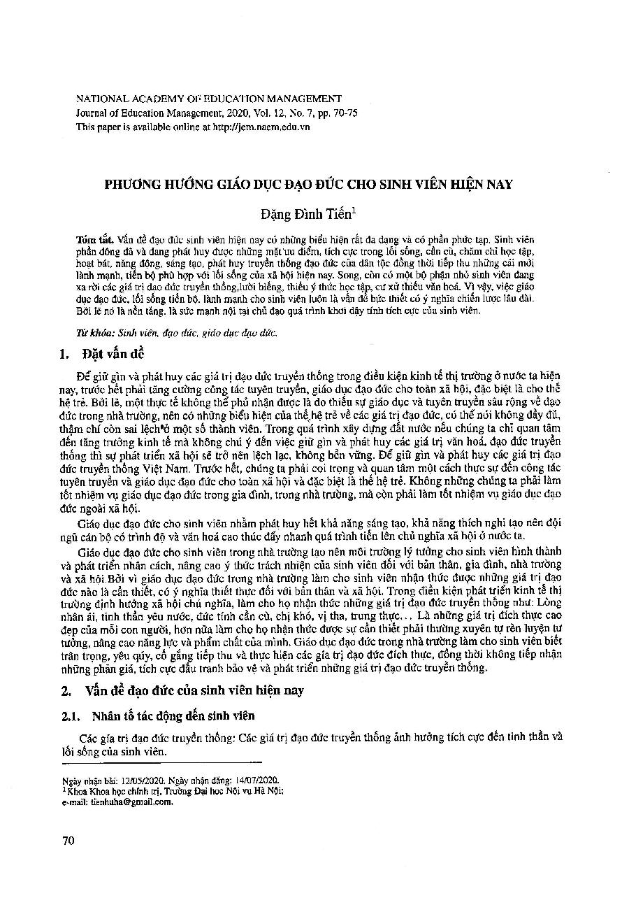 Phương hướng giáo dục đạo đức cho sinh viên hiện nay = Direction for moral education among students today