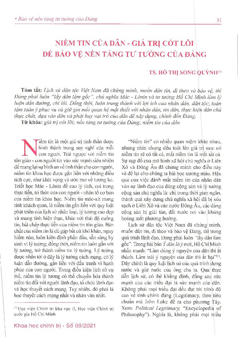 Niềm tin của dân - giá trị cốt lõi để bảo vệ nền tảng tư tưởng của Đảng