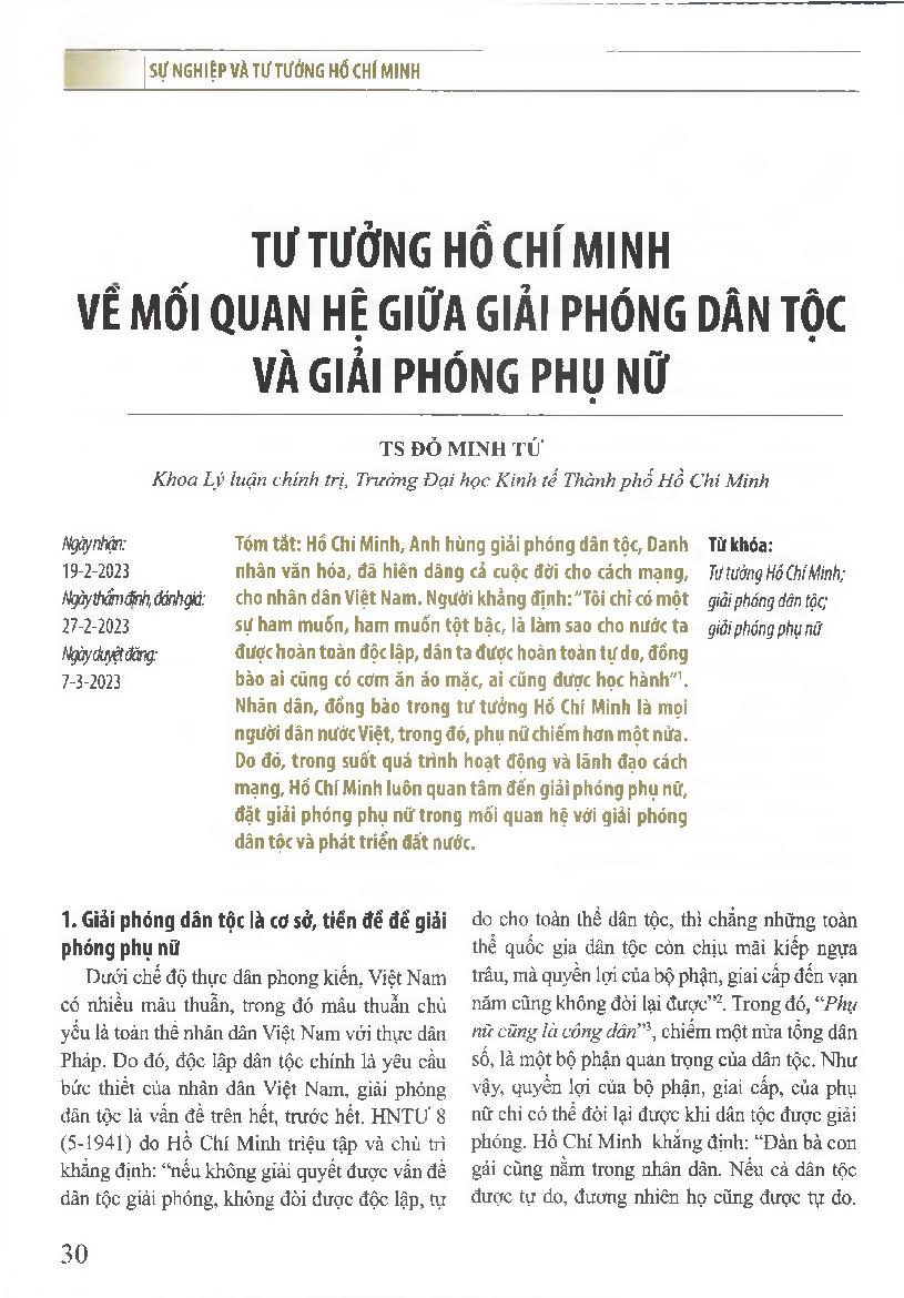 Tư tưởng Hồ Chí Minh về mối quan hệ giữa giải phóng dân tộc và giải phóng phụ nữ = Ho Chi Minh's thought on the relationship between national liberation and women's liberation