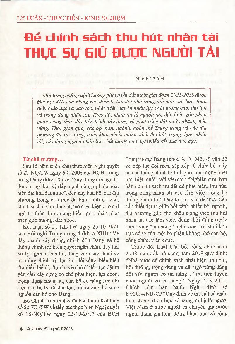 Để chính sách thu hút nhân tài thực sự giữ được người tài