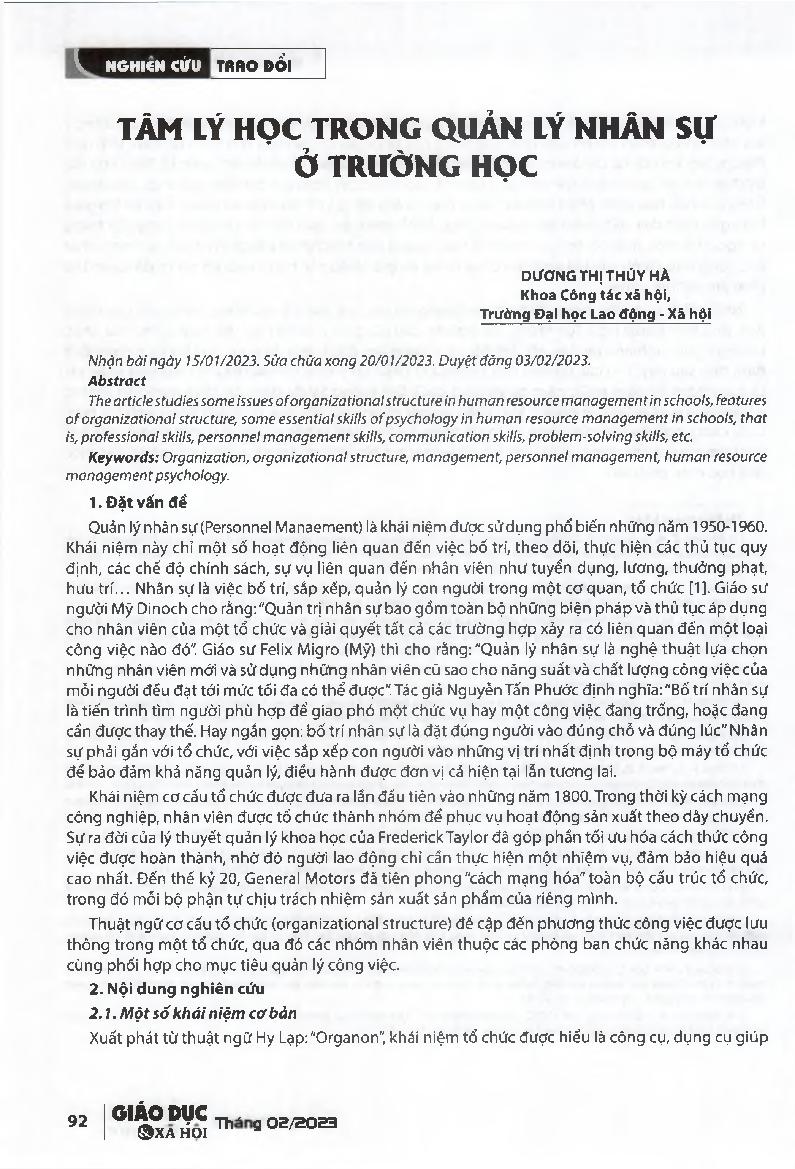 Tâm lý học trong quản lý nhân sự ở trường học = Psychology in human resource management in schools