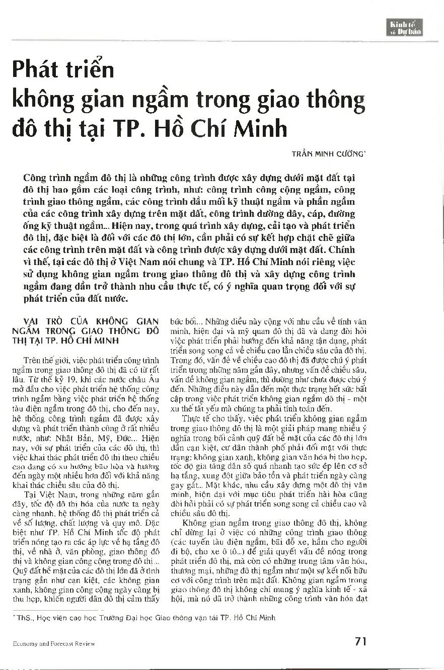 Phát triển không gian ngầm trong giao thông đô thị tại TP. Hồ Chí Minh