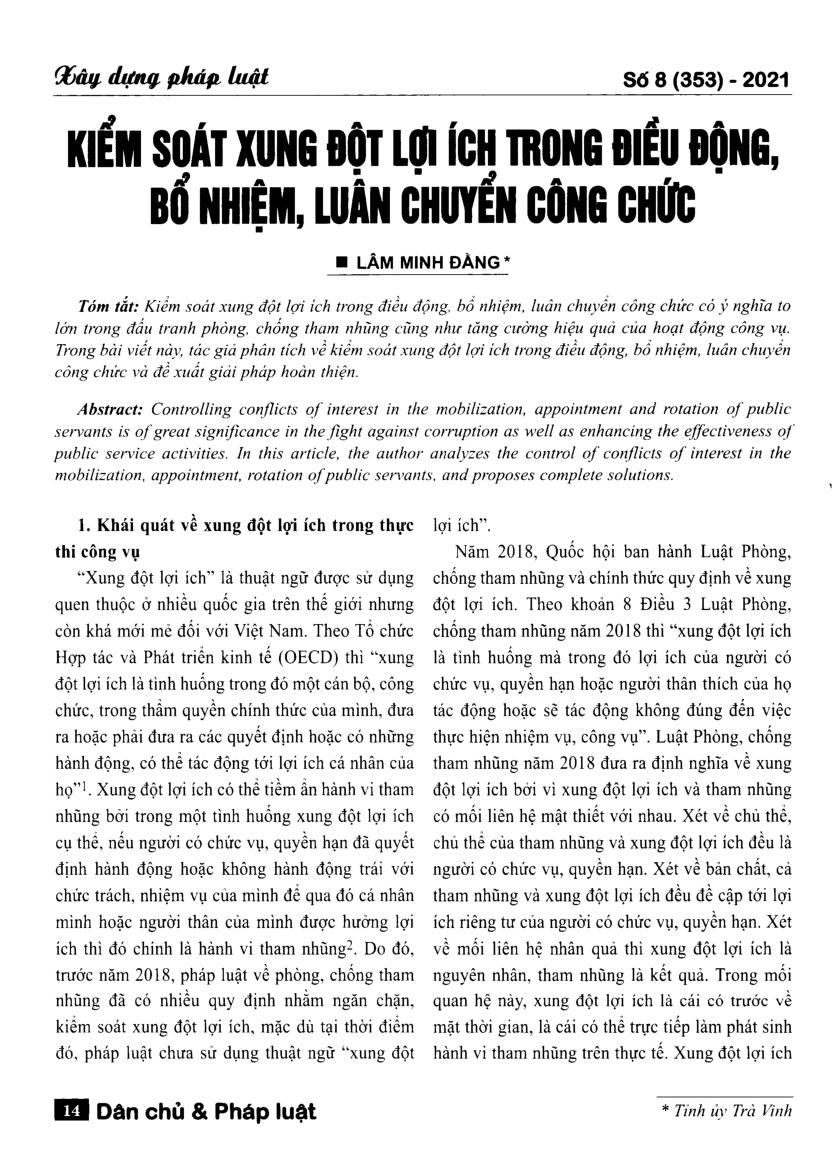Kiểm soát xung đột lợi ích trong điều động, bổ nhiệm, luân chuyển công chức