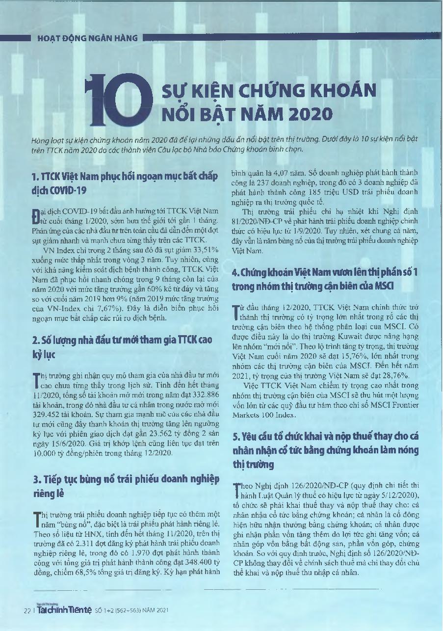 10 sự kiện chứng khoán nổi bật năm 2020