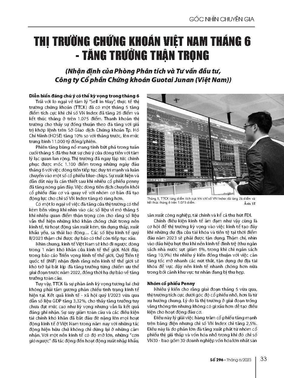 Thị trường chứng khoán Việt Nam tháng 6 - tăng trưởng thận trọng