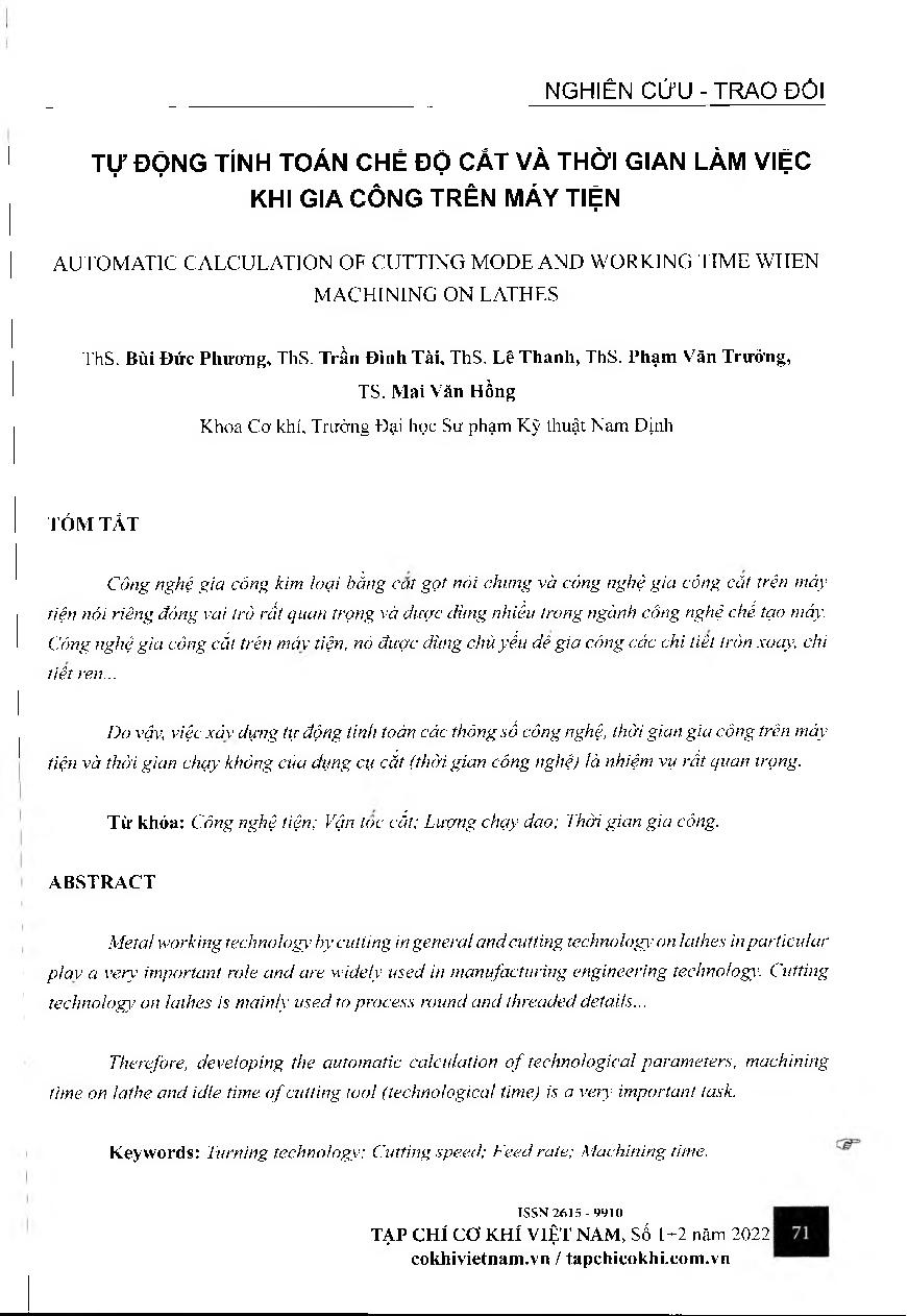 Tác giả: Đỗ Văn Triều; Hoàng Mạnh Thắng; Trần Đình Bão; Hoàng Văn Vân; Nguyễn Tuấn Thành;