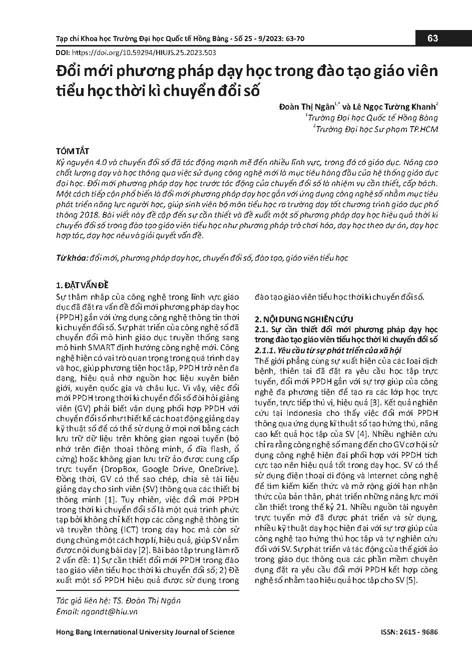 Đổi mới phương pháp dạy học trong đào tạo giáo viên tiểu học thời kì chuyển đổi số