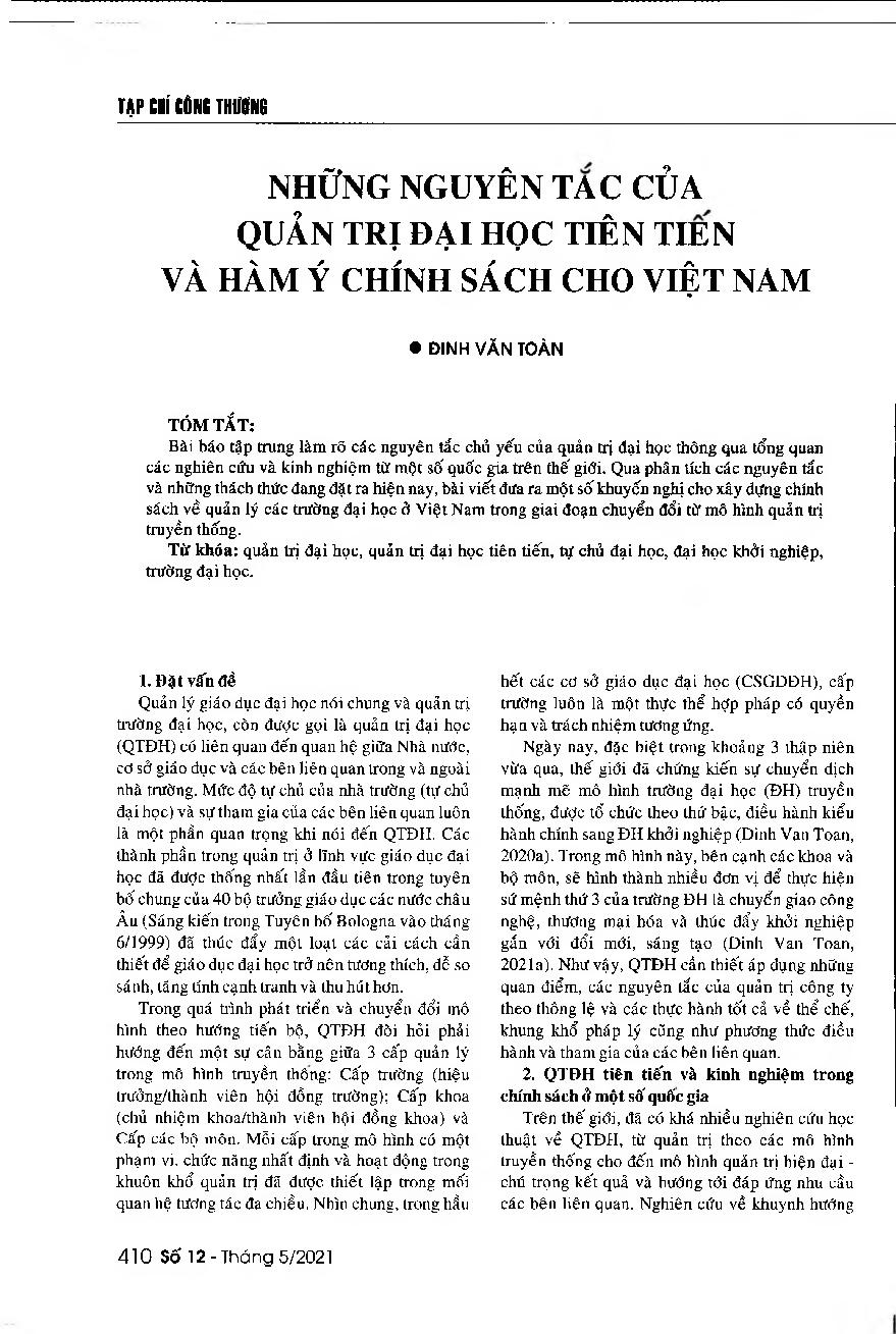 Những nguyên tắc của quản trị đại học tiên tiến và hàm ý chính sách cho Việt Nam = Principles of advanced university governance and policy recommendations for Vietnamese universities