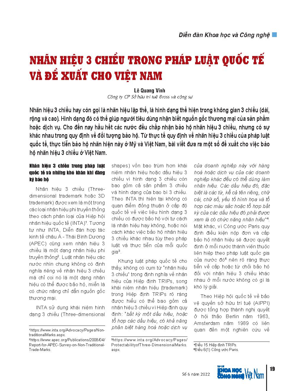 Nhãn hiệu 3 chiều trong pháp luật quốc tế và đề xuất cho Việt Nam