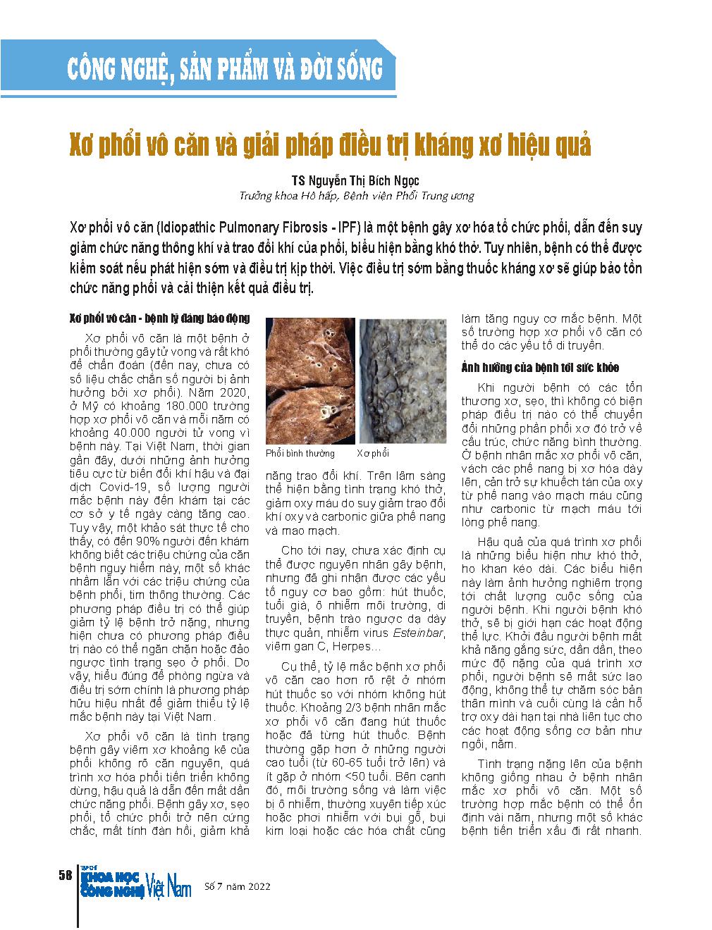 Xơ phổi vô căn và giải pháp điều trị kháng xơ hiệu quả = Idiopathic pulmonary fibrosis and effective anti-fibrotic treatment solutions