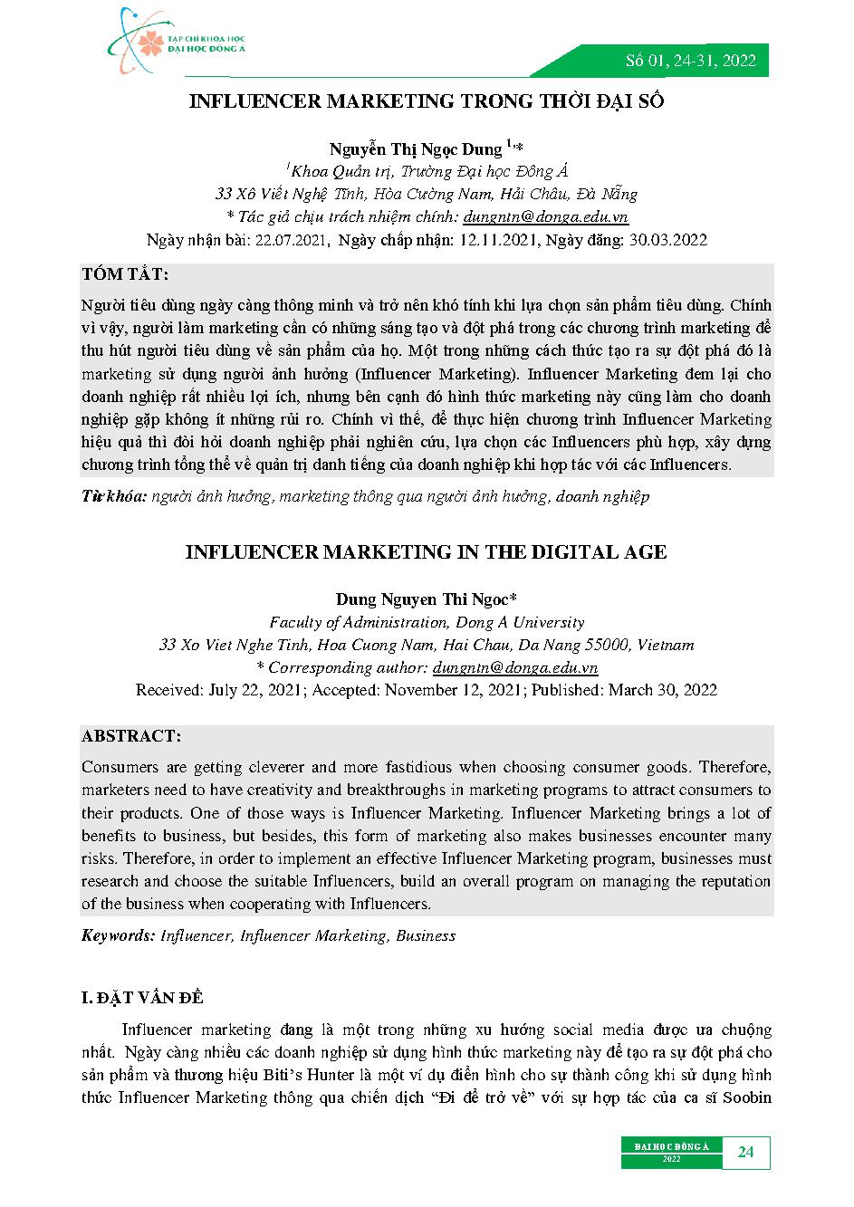 Influencer marketing trong thời đại số = Influencer marketing in the digital age