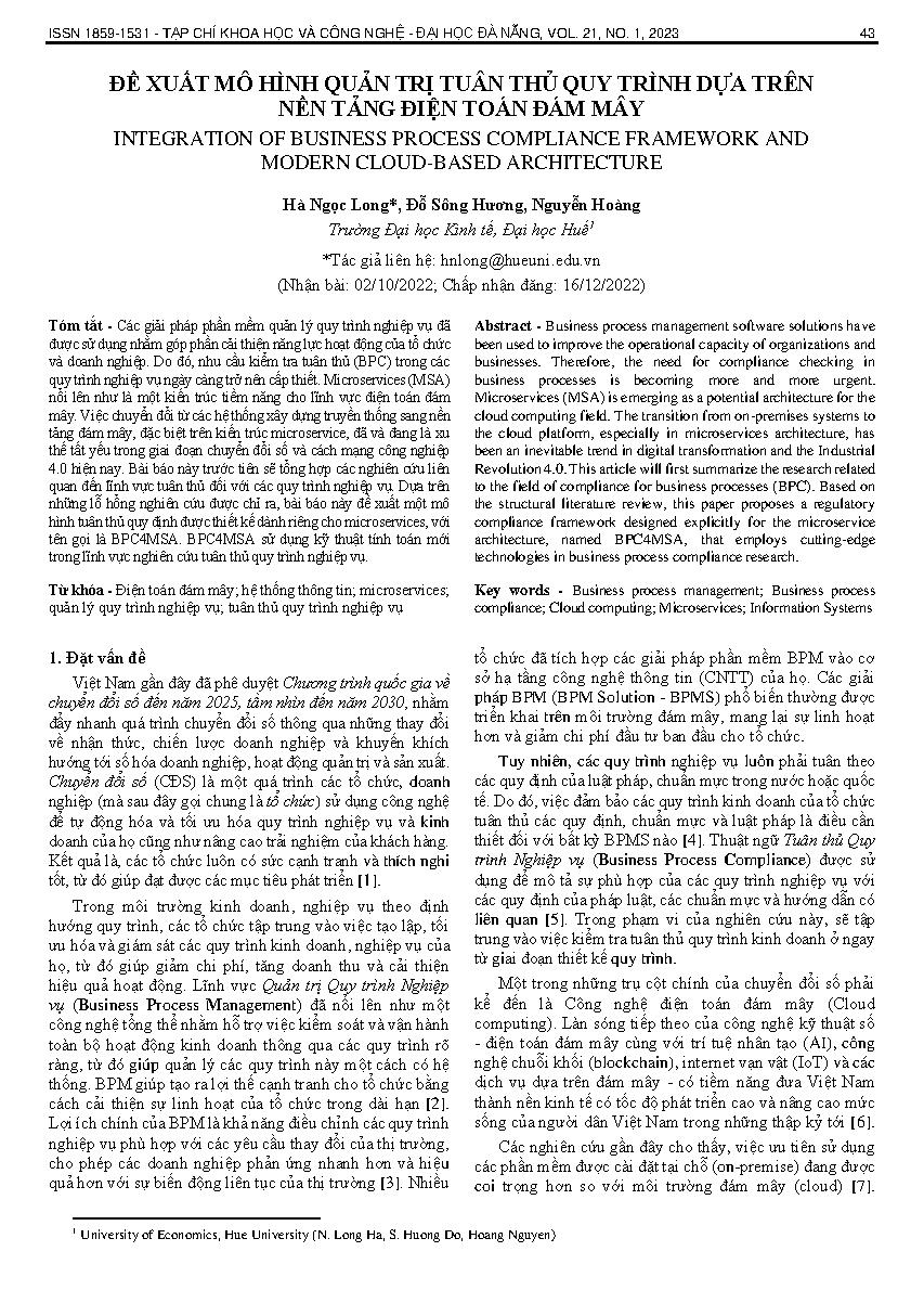 Đề xuất mô hình quản trị tuân thủ quy trình dựa trên nền tảng điện toán đám mây = Integration of business process compliance framework and modern cloud-based architecture