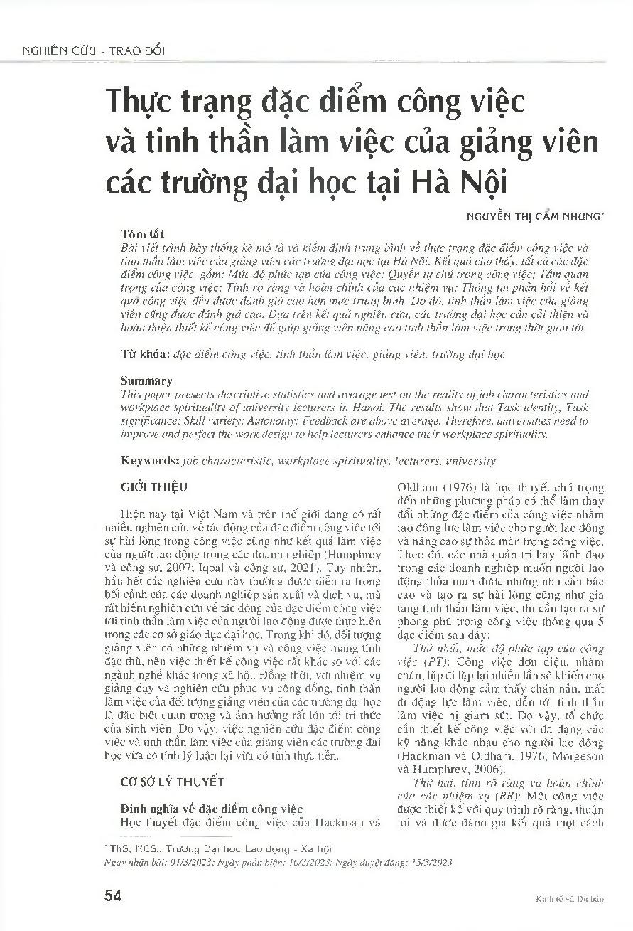 Thực trạng đặc điểm công việc và tinh thần làm việc của giảng viên các trường đại học tại Hà Nội